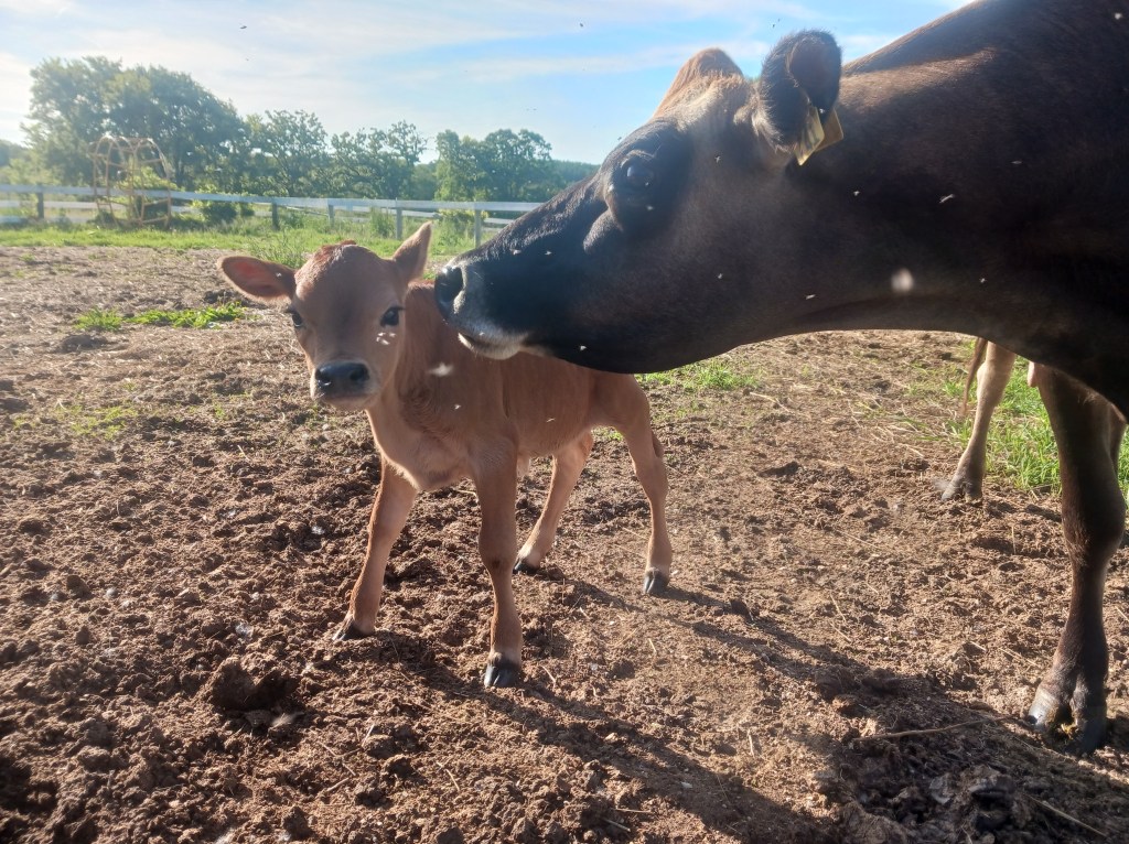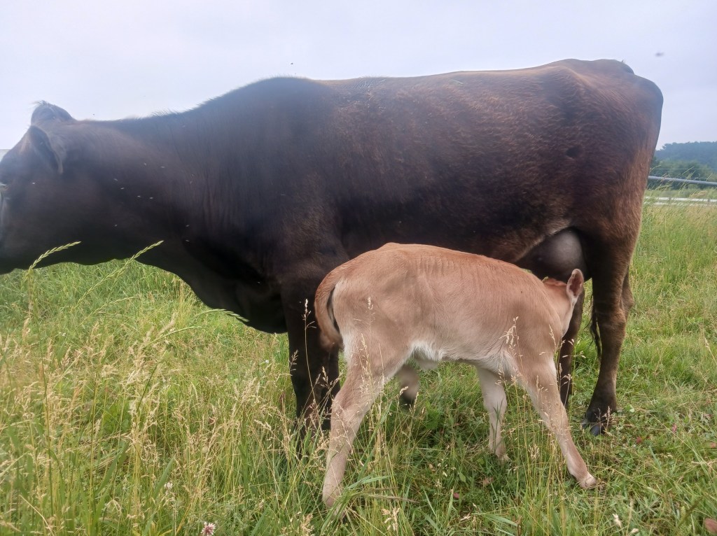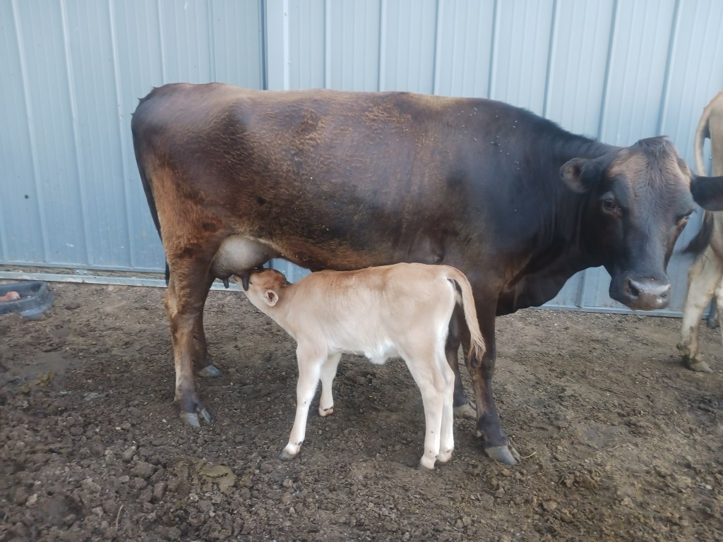 We have miniature cows available for small farms and homesteads. They are jersey crosses and make excellent family milk cows. Milk and cream production is outstanding. They have gentle demeanors and are dedicated mothers. Please consider that cows are herd animals and are happiest with other cows or a mixture of donkeys, horses, goats, etc.
